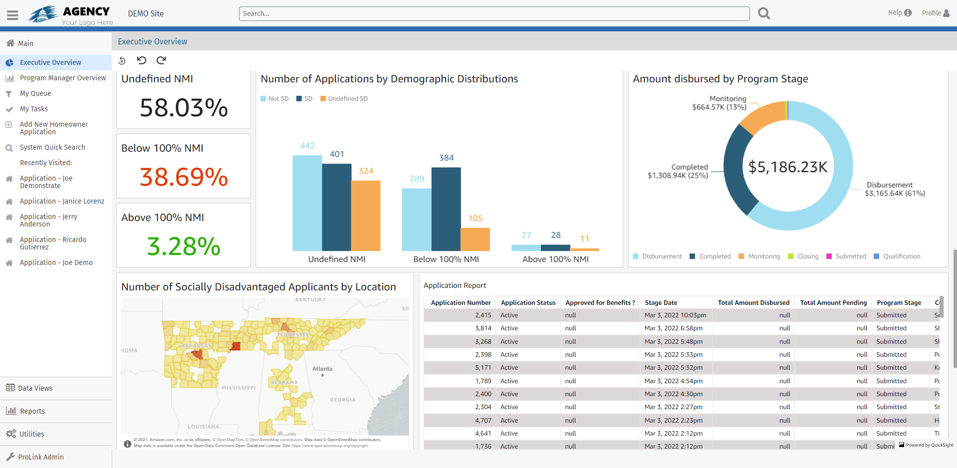 Federal funding programs have traditionally faced challenges with distribution to citizens in need. ProLink Solutions seeks to provide an easy-to-adopt, easy-to-use, and repeatable solution for governments, powered by modern technology. ProLink+ simplifies the process of distributing the funds to the public through an intuitive interface. The dashboard capabilities of QuickSight are an asset to both ProLink Solutions as a solutions provider and state government agencies as end-users. Intuitive, effective data reporting and visualization provides critical insights that help governments communicate their work on behalf of the public, while continuing to improve delivery of their services.