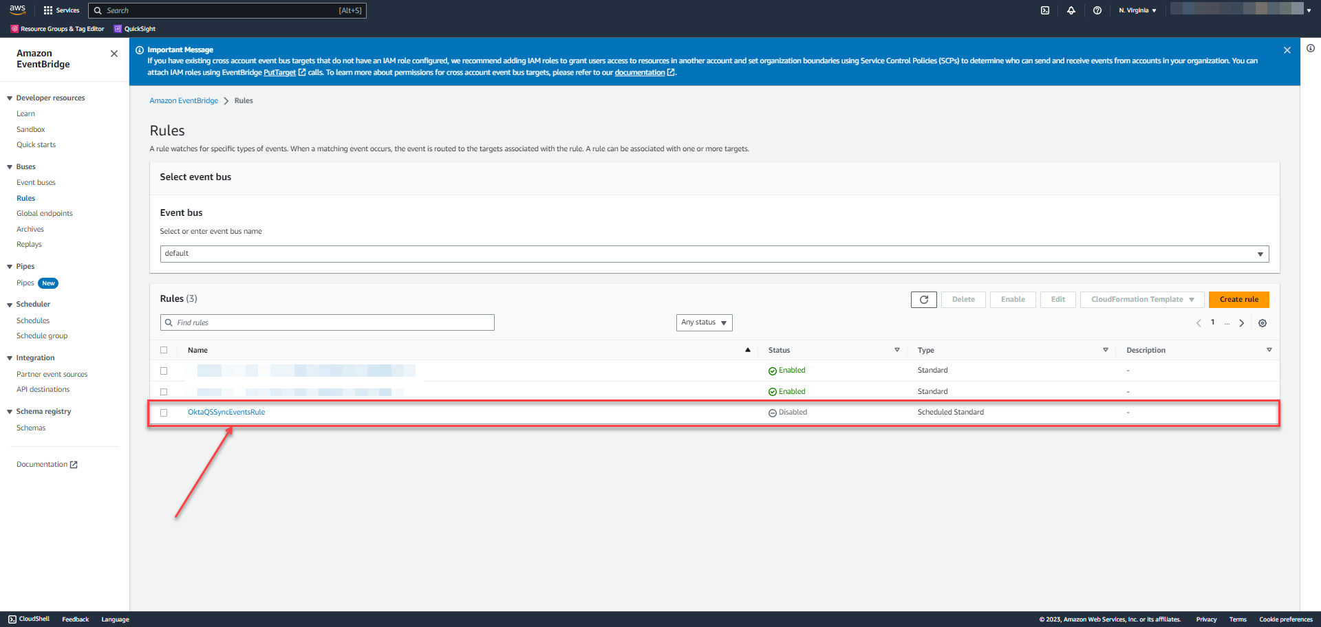 Enable EventBridge rule