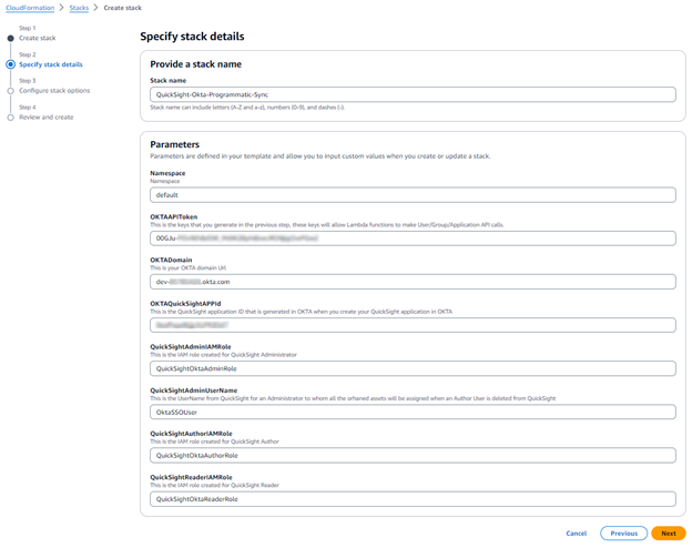 OKTAAPITokenOKTADomainOKTAQuickSighAPPIdQuickSightAdminUserNameQuickSightAdminIAMRoleQuickSightAuthorIAMRoleQuickSightReaderIAMRole