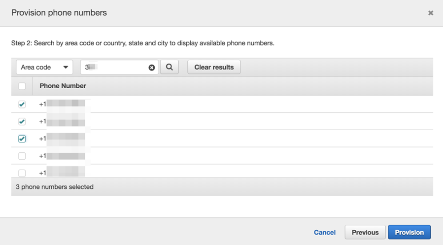 . I choose my desired phone numbers and then select Provision.