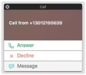 Now let’s talk about incoming calls. If the incoming calling feature has been enabled, when a caller dials my Chime phone number, I will receive an incoming call notification in the Chime application: