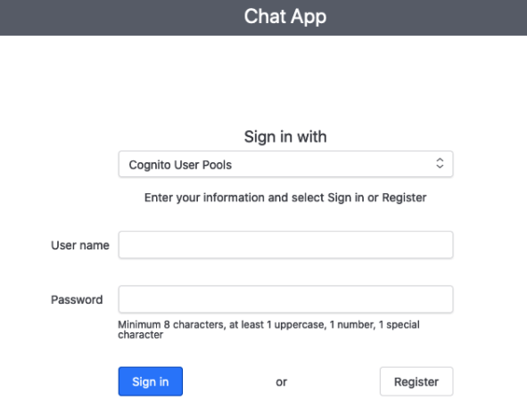 In this section, you will deploy a simple web app written in the React framework in your local environment. This app demonstrates the Amazon Chime SDK messaging features. Once you set up the app locally, you are able to get started.