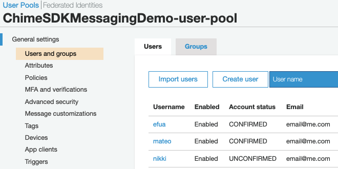- To confirm the user, go to User Pools and confirm the user by clicking on the username, and choosing Confirm User.