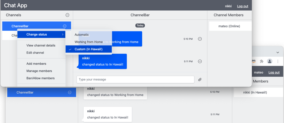 In this blog, you will learn how to implement automatic and custom presence statuses, as well as typing indicators, in a channel.