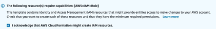- On the Review page, check the I acknowledge that AWS CloudFormation might create IAM resources check box, and then click Create.