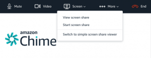 - In the Amazon Chime Window, choose the Screen option.