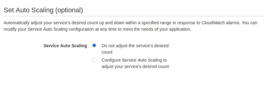 6. For Step 3: Set Auto Scaling (optional), keep the default value for Service Auto Scaling and choose Next Step.