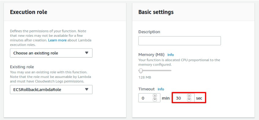 Next, we create a Lambda function to roll back an Amazon ECS deployment.