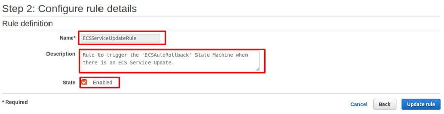 Setting up the CloudWatch trigger is the last step in linking the Amazon ECS UpdateService events to the Step Functions state machine that we set up. With this step complete, we can move on to testing the solution.