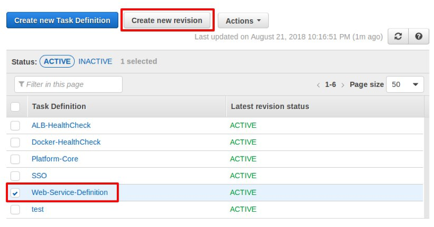 · The solution assumes that with every revision of the task definition, you use a new Docker tag instead of using the default “latest” tag. As a best practice, we advise that you do every release with a different Docker image tag and a revision of the task definition.
