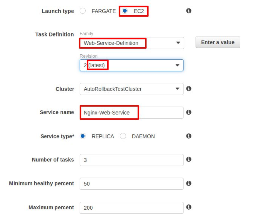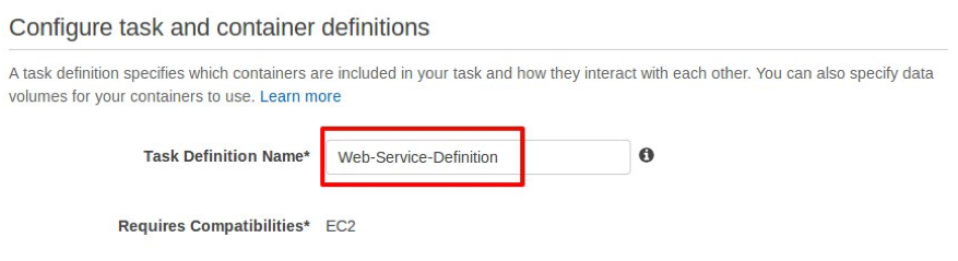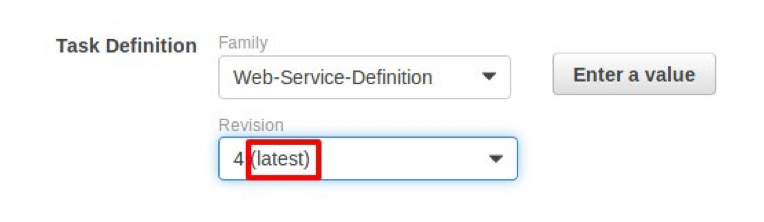 · Task Definition Family: Web-Service-Definition. This automatically selects the latest revision of the task definition.