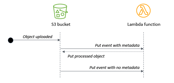 This allows you to use the same bucket and key name for processed objects, but it requires that the application creating the original object can set object metadata. In this approach, the Lambda function is always invoked twice for each uploaded S3 object.