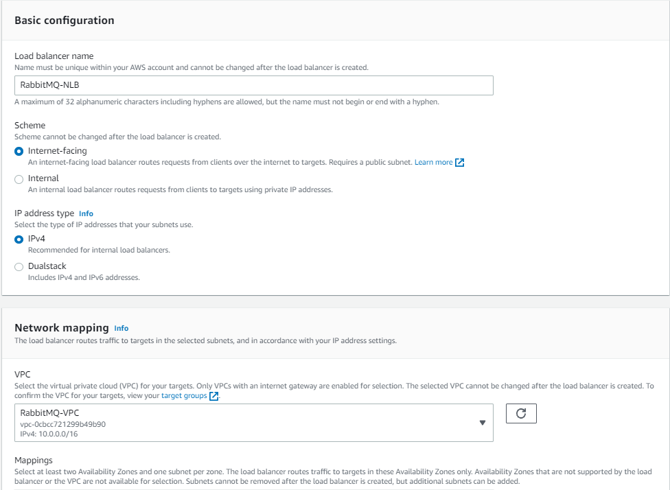 Be sure not to use RabbitMQ’s AMQP port as the target group health check port. The NLB may not be able to recognize the host as healthy on that port. It is better to use the broker’s web console port.