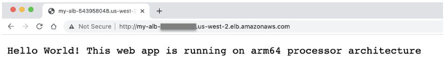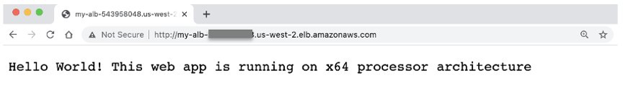 - Open your browser and point to your Load Balancer DNS name. Refresh to see the output switches between x86 and Graviton2 instances.