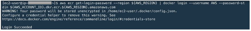 aws ecr get-login-password --region ${AWS_REGION} | docker login --username AWS --password-stdin ${AWS_ACCOUNT_ID}.dkr.ecr.${AWS_REGION}.amazonaws.com