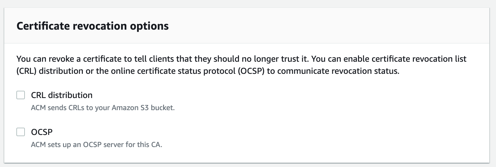 - From the Configure revocation panel, choose any optional certificate revocation options you require and choose Next.