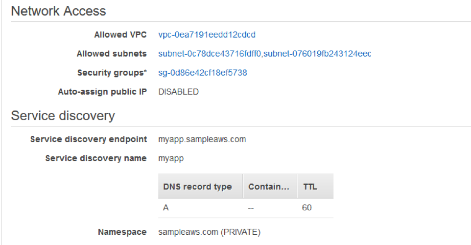 ECS Service discovery – Amazon ECS service can optionally be configured to use Amazon ECS Service Discovery. Service discovery uses Amazon Route 53 auto naming API actions to manage DNS entries (A or SRV records) for service tasks, making them discoverable within your VPC. You can specify health check conditions in a service task definition and Amazon ECS will ensure that only healthy service endpoints are returned by a service lookup.