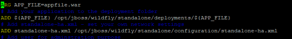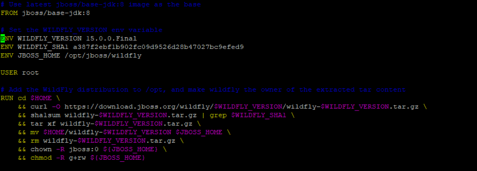 - Package the JBoss/Wildfly image with JEE application & Wildfly platform on Docker. Create a Dockerfile & include the following: