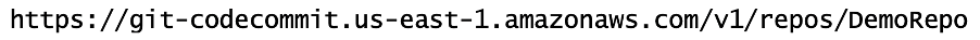 aws codecommit get-repository \ --repository-name DemoRepo \ --query repositoryMetadata.cloneUrlHttp \ --output textThe output should look like the following: