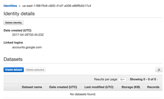 Lambda processes the data and sends it in a proper format to DynamoDB, which uses the identity ID as a hash key. Due to the random and unique nature of the ID, it’s perfect to be used for querying the table.