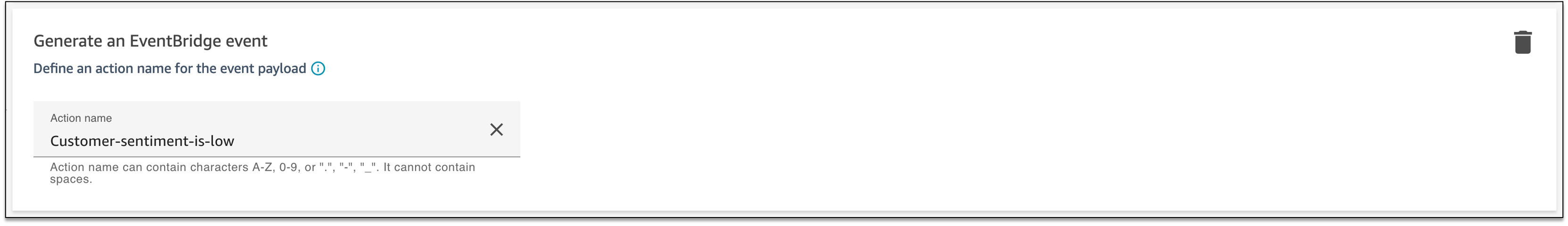 - In the “Action name” field enter “Customer-sentiment-is-low” and then select “Next“