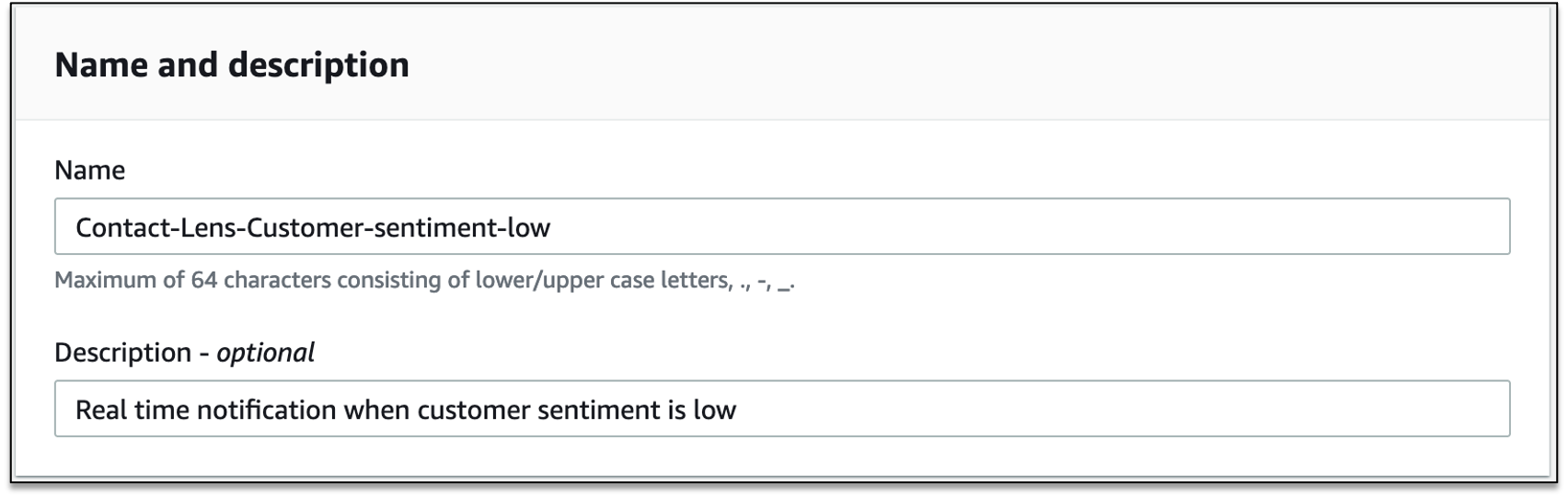 - Enter in the description field “Real time notification when customer sentiment is low”