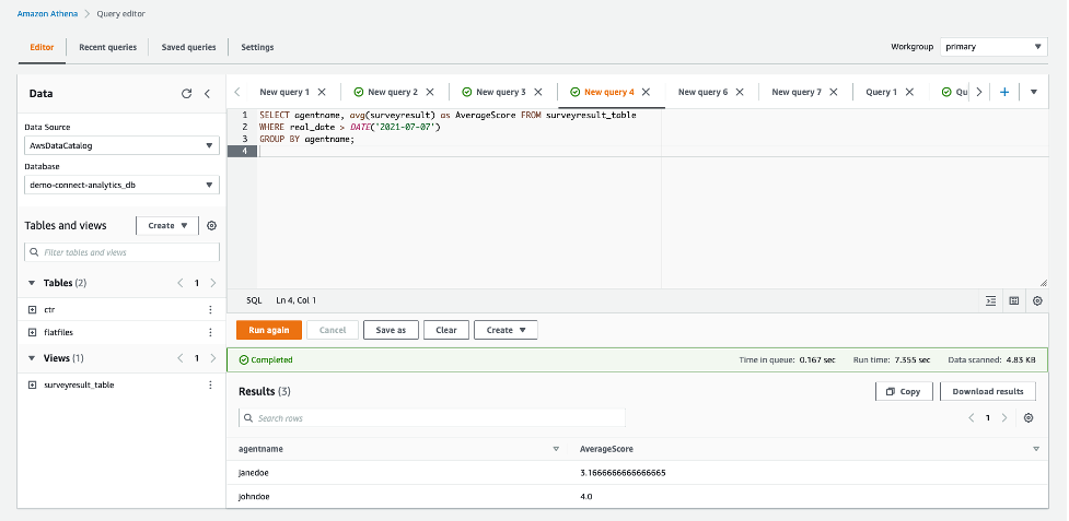 7. Run the following sample reporting queries, written in SQL for Athena: