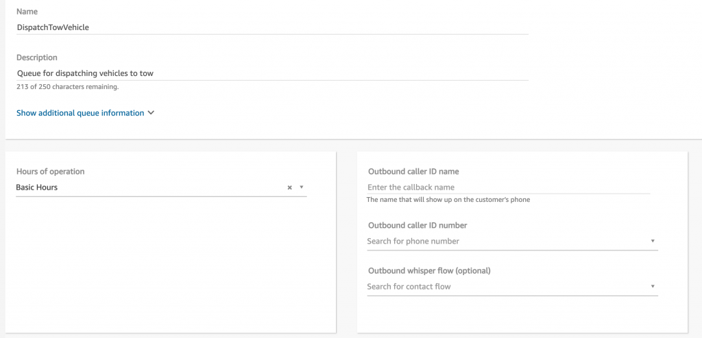 - For the purpose of this demo, choose Basic Hours for Hours of operation and leave all other options as default