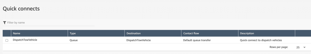- Choose DispatchTowVehicle under the Quick connects section
