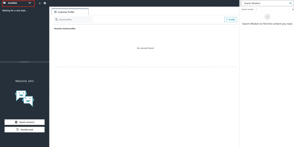 - To get started, set the Agent to Available state
