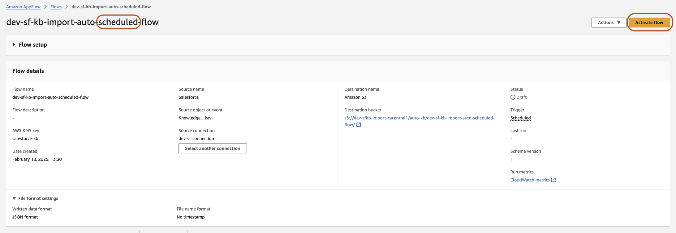 - Start the Scheduled Flow – to periodically poll Salesforce Knowledge to import any additions/updates to the Salesforce Knowledge.