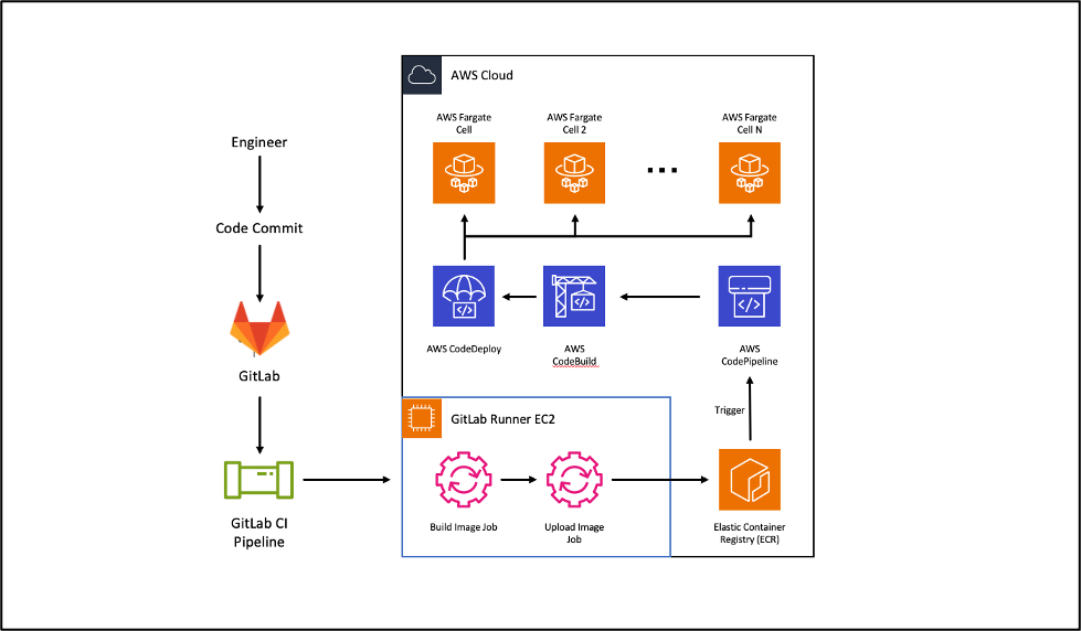 Automated cell-based deployments is yet another way to drive efficiency. As engineers check in code, GitLab Continuous Integration (CI) runs the build process and triggers the pipeline. Smartsheet builds the docker images and pushes to Amazon Elastic Container Registry (Amazon ECR), which is a fully managed Docker container registry that simplifies the storage, sharing, and deployment of container images. Once in Amazon ECR, AWS CodePipeline’s native integration with Amazon ECR triggers off an image push to process and create a build artifact through AWS CodeBuild that’s passed to AWS CodeDeploy, which is deployed to AWS Fargate. Smartsheet uses a variety of managed services with existing integrations with AWS Fargate.