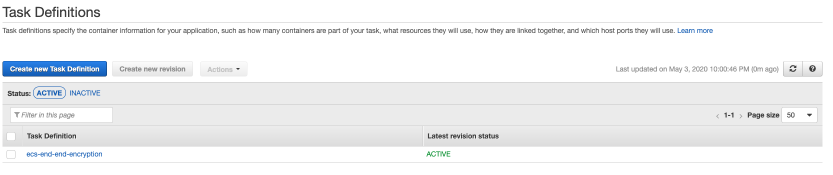 Verify the creation of the task definition on the AWS Management Console.