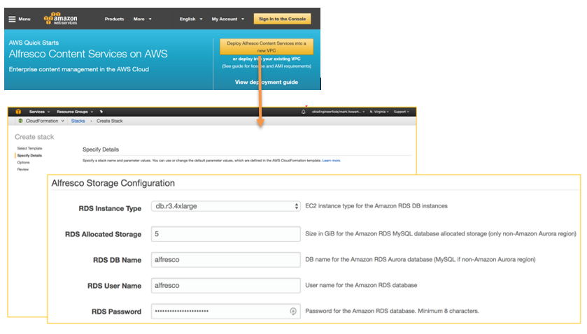 We often see customers use AWS CloudFormation templates to automate and accelerate their deployment, including Amazon Aurora. Alfresco recently released an AWS Quick Start to help customers quickly deploy Alfresco Content Services on AWS, using Amazon Aurora, Amazon EC2, and Amazon S3. It builds in best practices for availability, scalability, and security and reduces deployment time to less than one hour. This is a significant improvement in time-to-market compared to typical on-premises deployments that could take days or even weeks.