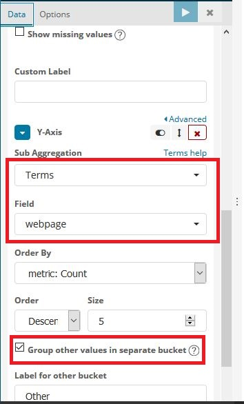 6. Under Bucket, select Aggregation as Terms, Field as webpage