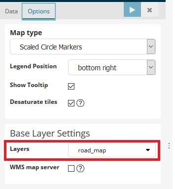 1. On the Options tab, under Base Layer Settings, set Layers to road_map and choose Apply changes.