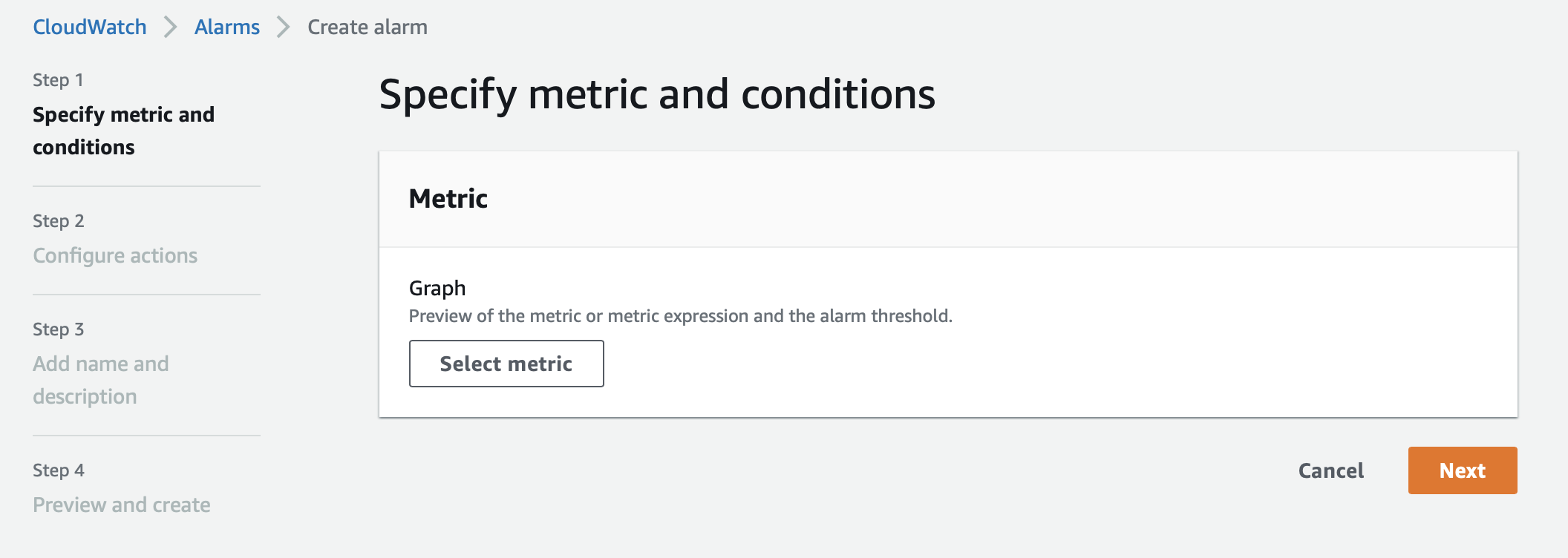 - On the CloudWatch console, choose Alarms in the navigation pane.