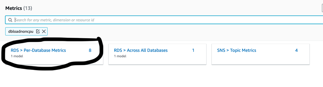 dbloadnoncpu. - Choose RDS-> Per-Database Metrics.
