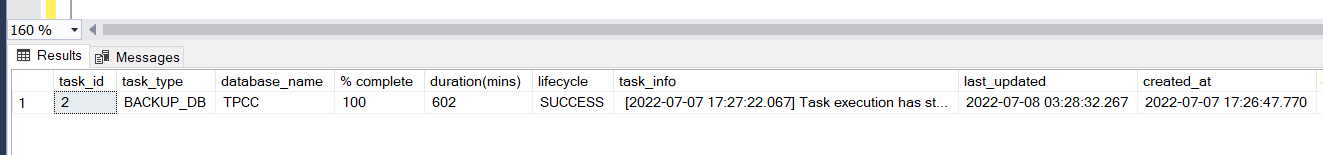 The following screenshot shows our results. The backup of 5TB database using one file completed in 602 mins.