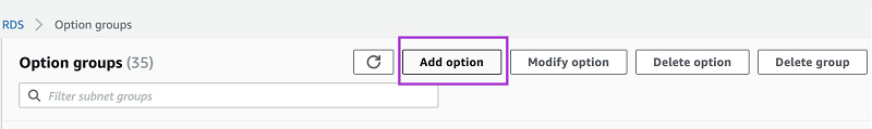 - On the Amazon RDS console, choose Option groups. You can create or modify an existing option group.
