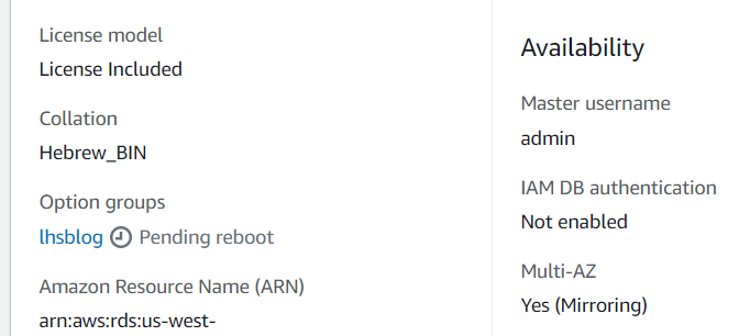 After you successfully modify the option group, the status of the option group shows as Pending reboot, indicating a reboot of the RDS for SQL Server DB instance is required after enabling the feature.