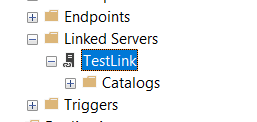 Next, review the linked server using SQL Server Management Studio (SSMS), as shown in the following image.