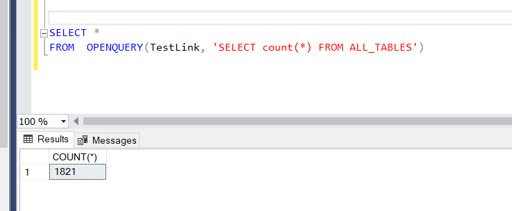 You can also run the query using the linked server to verify if the remote data source is accessible. If the COUNT number returns a non-zero number, then the remote data source is accessible.