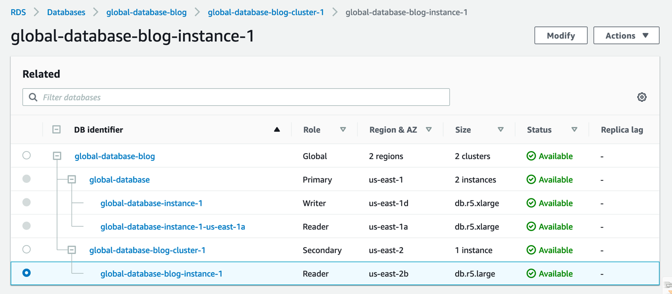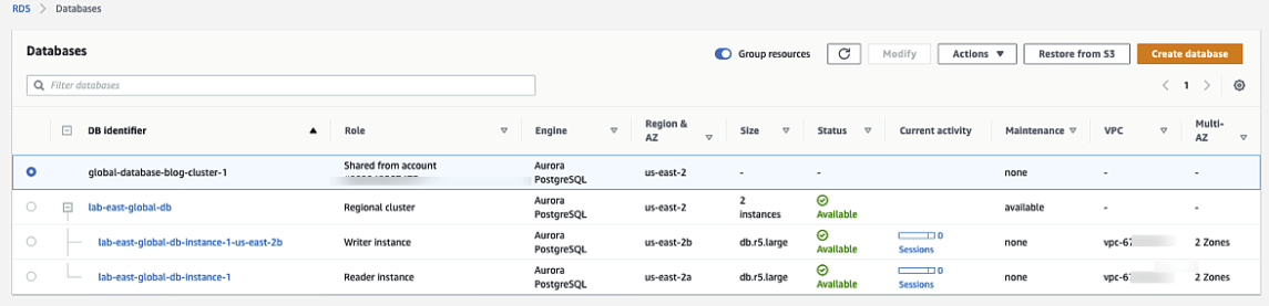 This walkthrough assumes you already have an existing Aurora global database up and running with at least one secondary cluster. For instructions, see Creating an Amazon Aurora global database.