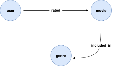 The following diagram represents a graph data model on the MovieLens dataset from grouplens. A potential ML task on this dataset is to predict the rating attribute on the rated edge between a user and movie. This can be cast both a classification task on the edge property—each rating between 1–5 is one of five possible classes—or as a regression task, where the objective is to predict the real numeric value of the rating, like 3.8.