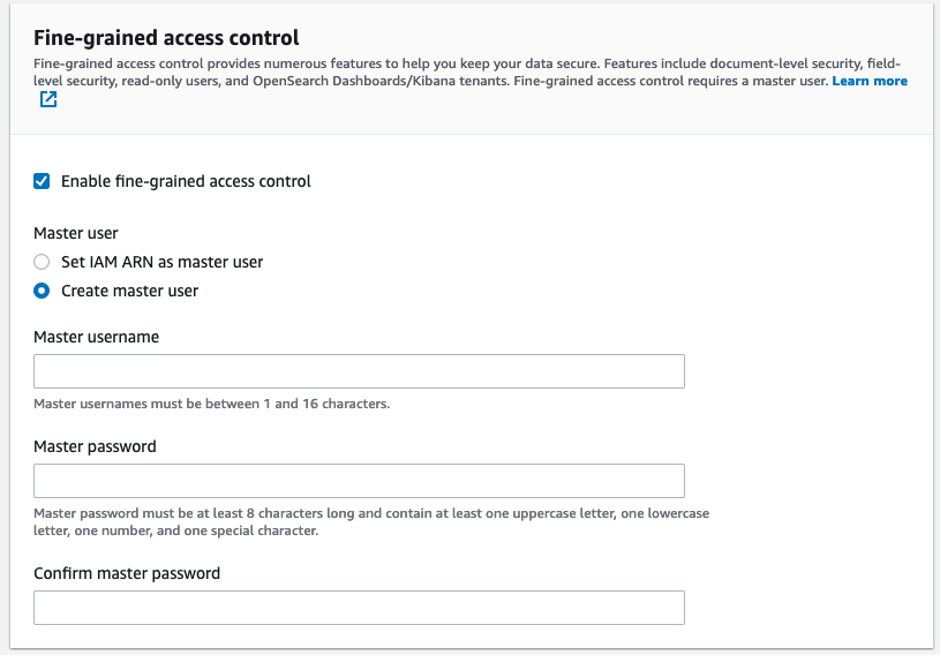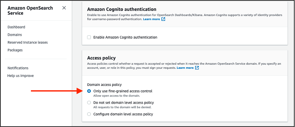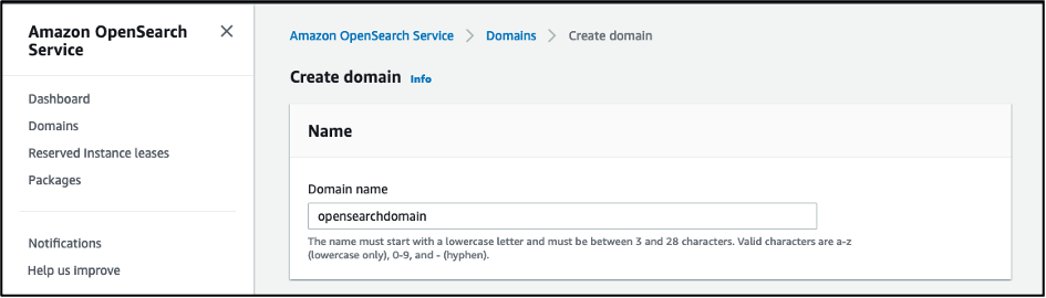 The target of this solution is Amazon OpenSearch. Create an OpenSearch Service Domain.