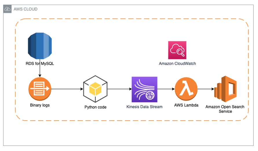 In our solution we implement a system that reads the MySQL binary logs, extracts the transactions, and pushes the transactions to a downstream analytics system like Amazon OpenSearch Service or Amazon Redshift. The solution also needs to be suitable for high transaction loads and be scalable and highly available.