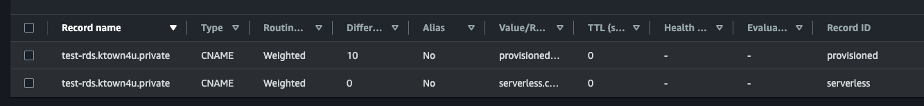 - Modify the weights of the records associated with the Aurora Serverless v2 read-only instance on Route 53.