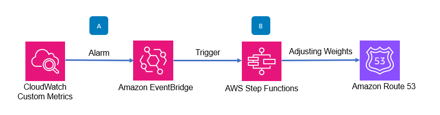- Adjust the weight of Amazon Route 53 weight-based records using AWS Step Functions.