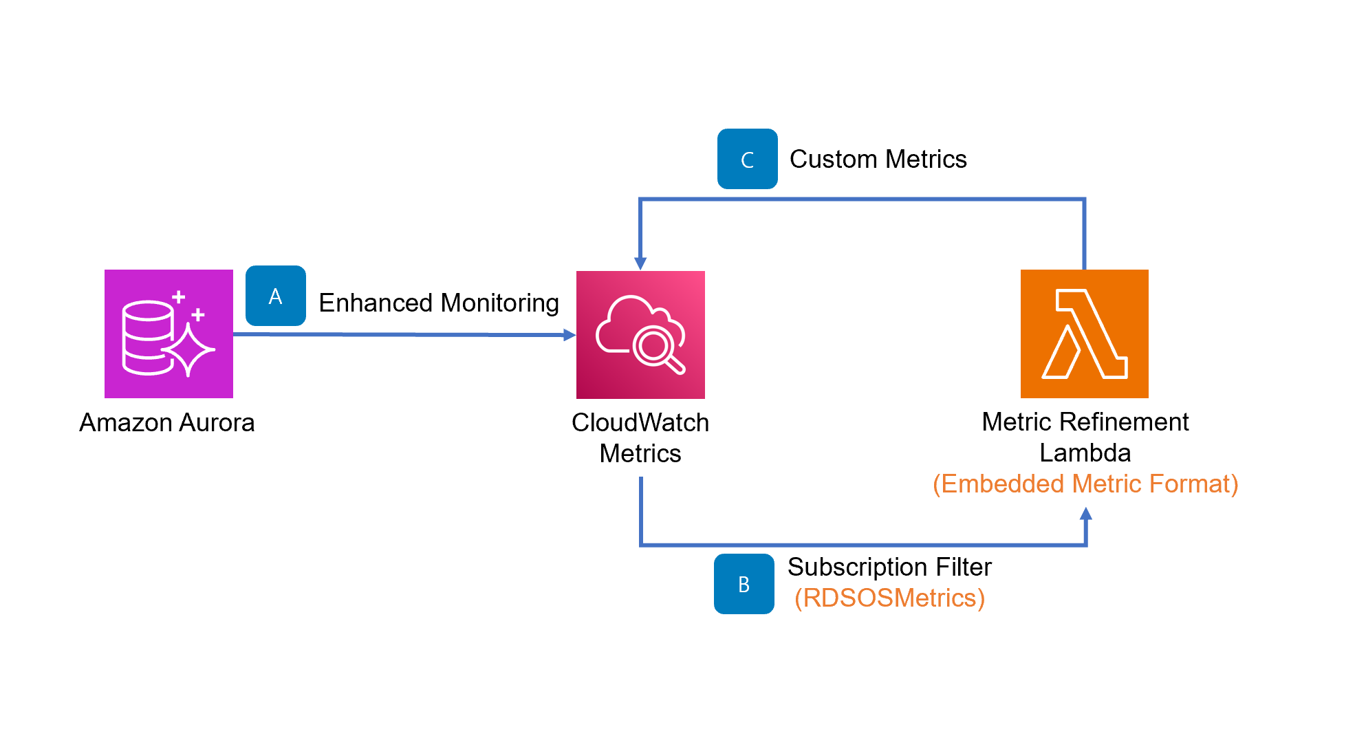If an additional Amazon Aurora instance could handle traffic during the approximately 5-6 minutes it takes to create a read-only instance, you could solve the service failure issue. An effective solution to this is by having an additional instance that handles traffic only during the period that read-only instances are created, and are only charged when they receive traffic. This configuration would also enable cost-optimization by reducing the number of read-only instances you spin up prior to responding to the event. The Aurora metrics available in Amazon CloudWatch have a resolution of 1 minute. Higher resolution metrics are needed for fast detection of read-only instance loads caused by traffic spikes.